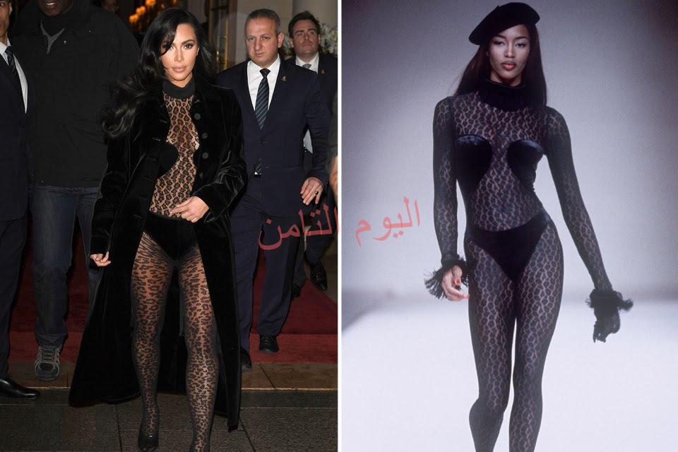 وتستمر المقارنات مع بعض مظاهر نعومي الأكثر حداثة عندما ارتدت كيم كاردشيان فى لوس أنجلوس العام الماضي زيا مماثلا لما ارتدته عارضة الأزياء الشهيرة أثناء تصوير المسلسل التلفزيوني The Face في عام 2013.