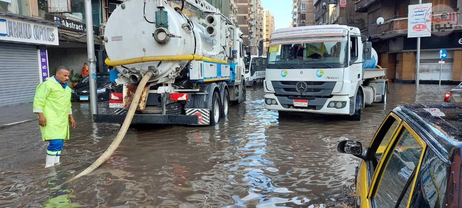 بالصور…أمطار الفجر بالإسكندرية.. الدفع بـ 150 سيارة لرفع تراكمات مياه الأمطار الرعدية من الشوارع