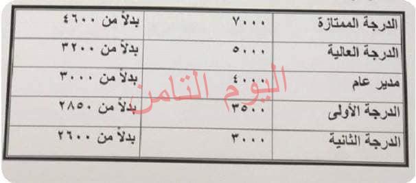 ١- رفع الحد الآدني لأجور جميع العاملين المدنيين بالدولة من المخاطبين وغير المخاطبين بقانون الخدمة المدنية رقم 81 لسنة 2016 ليتحرك من 1200 جنيه شهريا حاليا الي 2000 جنيه، بنسبة ارتفاع 66% وبما يعكس تحسين دخول جميع العاملين في الدولة. وبحيث يصبح الحد الادني للتعيين بادني الوظائف بالدرجة السادسة العمالية 2000 جنيه شهريا بدلا من 1200 جنيه المعمول به منذ عام 2014، ورفع الحد الادني لباقي الدرجات الوظيفية مقارنة بالحد الادني في اول يوليو 2018، ليصبح للدرجة السادسة ٢150 جنيه بدلا من 1850 جنيها والخامسة 2200 جنيها بدلا من 1870 جنيها والرابعة 2400 جنيه بدلا من 1890 جنيها والثالثة الوظيفية ٢٦٠٠ جنيه بدلا من ٢٠40 جنيه والثانية 3000 جنيه بدلا من 2600 جنيه والدرجة الاولي 3500 جنيه بدلا من 2850 جنيها ومدير عام 4000 جنيه بدلا من 3000 جنيه والدرجة العالية 5000 جنيه بدلا من 3200 جنيها والدرجة الممتازة ٧٠٠٠ جنيه بدلا من ٤٦٠٠ جنيه.