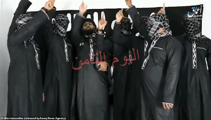 ويظهر الفيديو 8 جهاديين يرتدون عباءات سوداء ويقفون في دائرة ويمسكون بأيدي بعضهم البعض ويتعهدون بالولاء للتنظيم، ثم يشيرون إلى السماء، وخلفهم علم التنظيم.