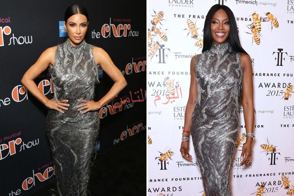 اتهم متابعون كيم كاردشيان بسرقة أسلوب السوبر موديل نعومي كامبل، وأنها دائما ما تتبع طريقة عارضة الأزياء وترتدى نفس الملابس التى ارتدتها من قبل.